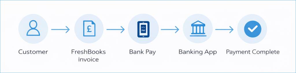 Barclaycard introduced Bank Pay as a new payment method designed to enable customers to pay directly from their bank account, removing the need for traditional card-based transactions. The initiative focused on embedding this capability within the existing merchant journey in FreshBooks, allowing businesses to accept payments seamlessly within their invoicing workflows.